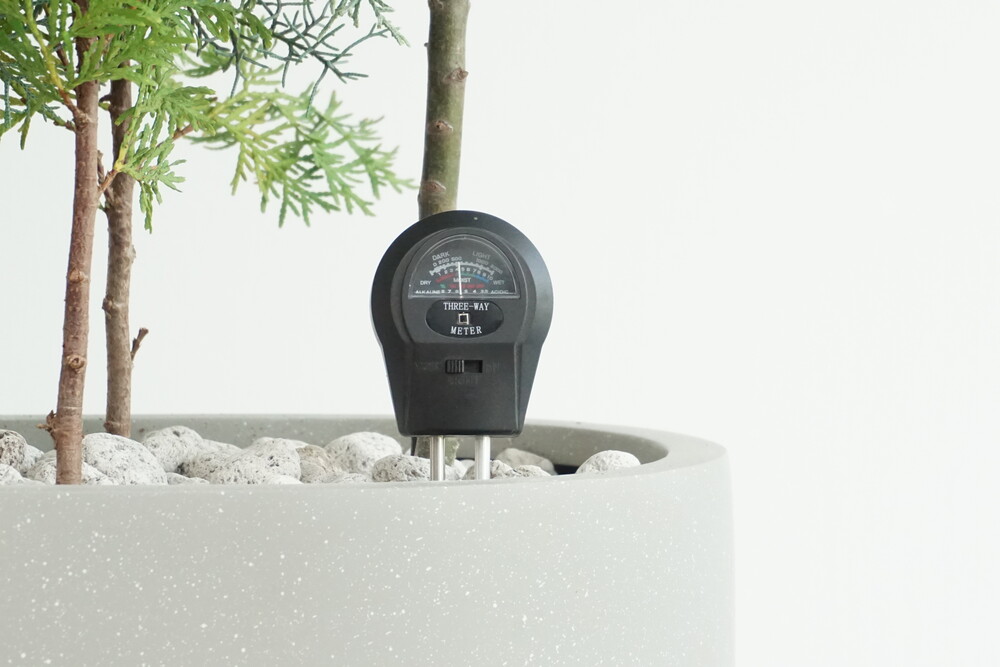 무동력 측정기를 이용하여 현재 화분 속 상태(수분, 산성도/일조량)를 체크해 볼 수 있습니다.