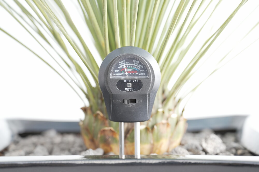 무동력 측정기를 이용하여 현재 화분 속 상태(수분, 산성도/일조량)를 체크해 볼 수 있습니다.