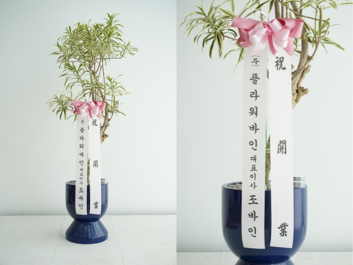 - 옵션에서 리본을 선택하고 원하시는 문구를 작성해 주세요. (좌 : 보내는 사람 / 우 : 문구)