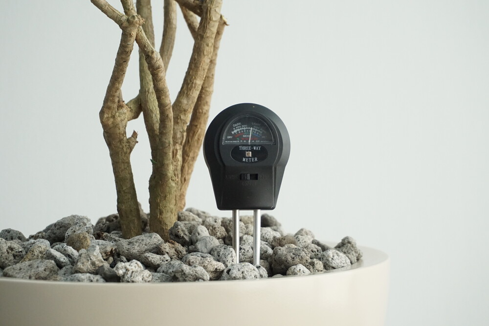 무동력 측정기를 이용하여 현재 화분 속 상태(수분, 산성도/일조량)를 체크해 볼 수 있습니다.