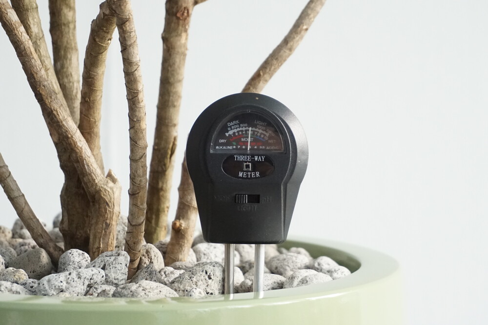 무동력 측정기를 이용하여 현재 화분 속 상태(수분, 산성도/일조량)를 체크해 볼 수 있습니다.