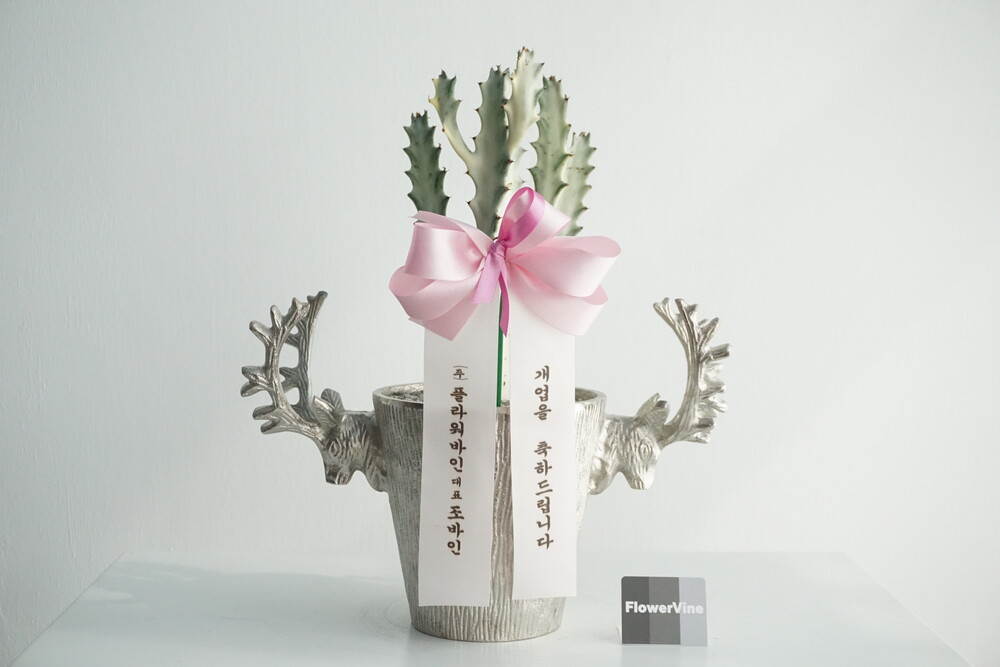식물 : 유포르비아 화이트고스트 / 화분 : 알루미늄 사슴화분
