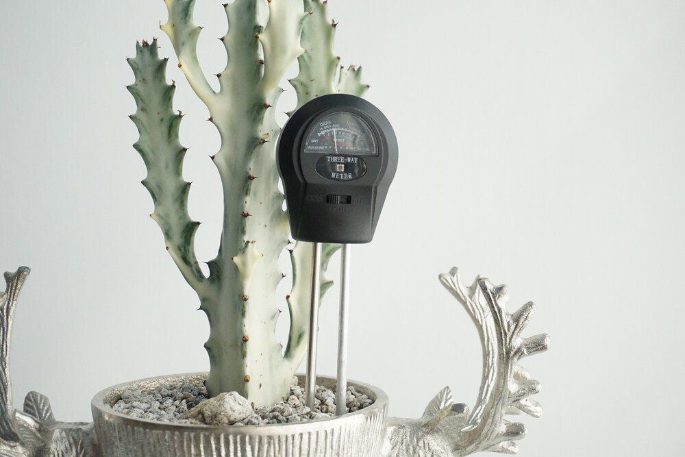 무동력 측정기를 이용하여 현재 화분 속 상태(수분, 산성도/일조량)를 체크해 볼 수 있습니다.