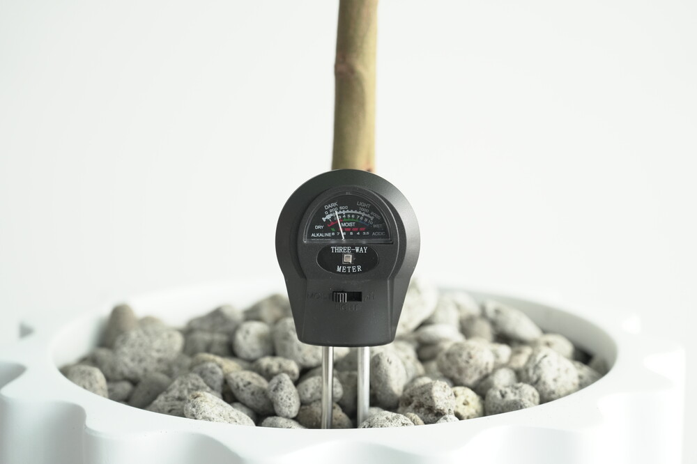 무동력 측정기를 이용하여 현재 화분 속 상태(수분, 산성도/일조량)를 체크해 볼 수 있습니다.
