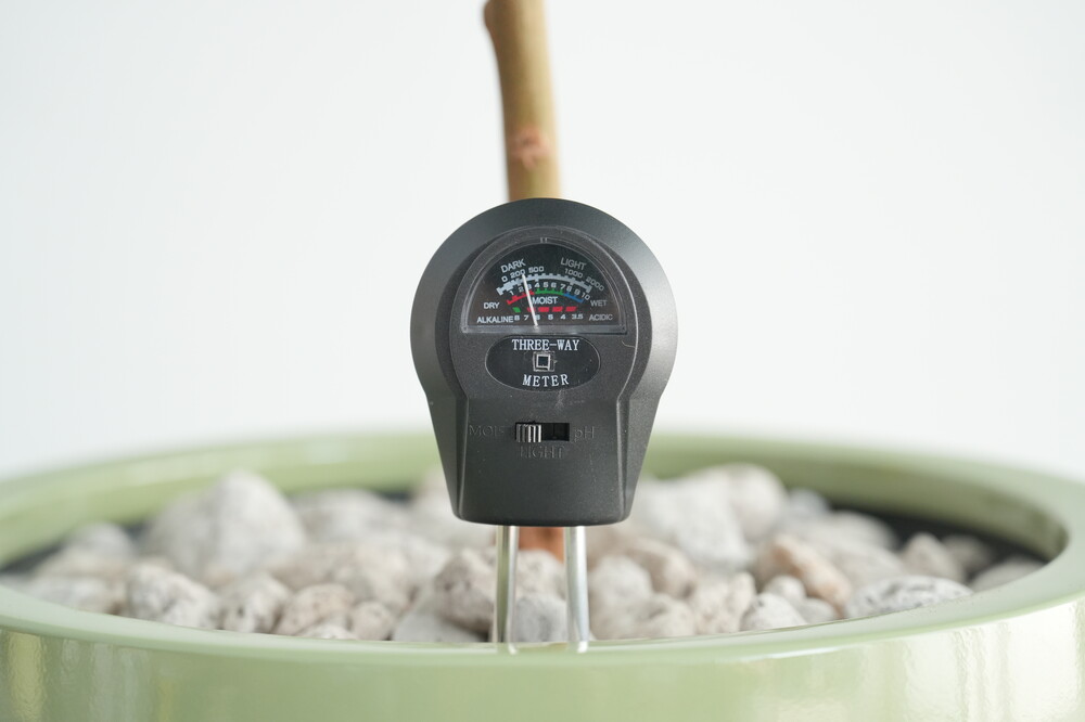 무동력 측정기를 이용하여 현재 화분 속 상태(수분, 산성도/일조량)를 체크해 볼 수 있습니다.