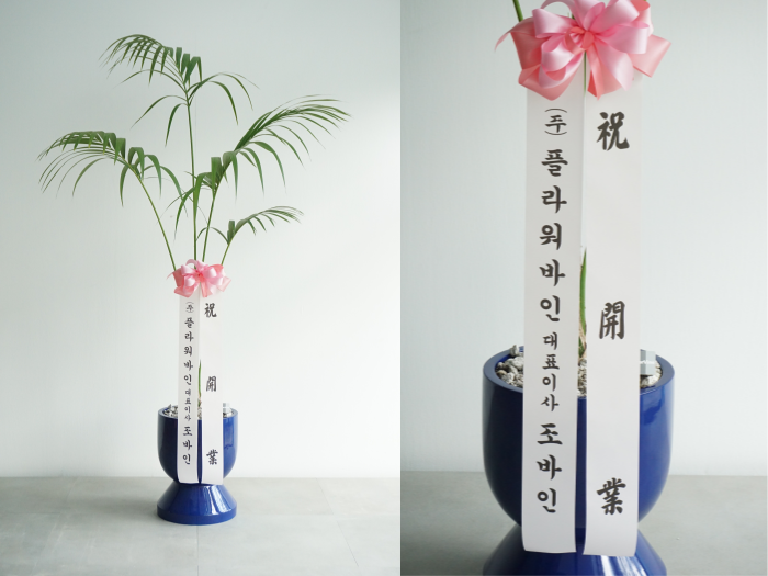 - 옵션에서 리본을 선택하고 원하시는 문구를 작성해 주세요. (좌 : 보내는 사람 / 우 : 문구)