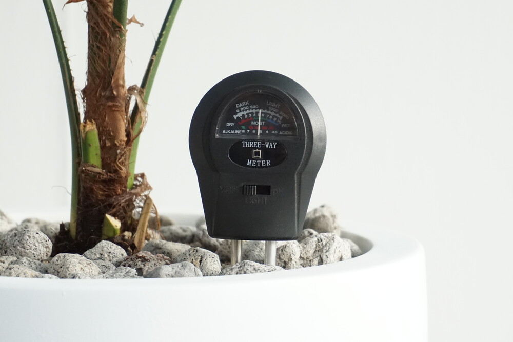 무동력 측정기를 이용하여 현재 화분 속 상태(수분, 산성도/일조량)를 체크해 볼 수 있습니다.