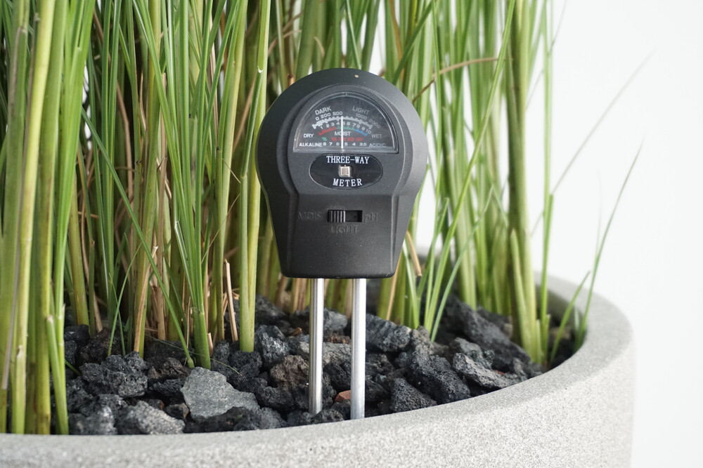 무동력 측정기를 이용하여 현재 화분 속 상태(수분, 산성도/일조량)를 체크해 볼 수 있습니다.