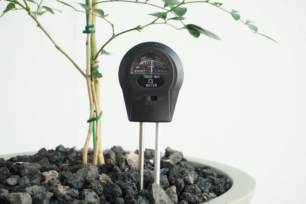 무동력 측정기를 이용하여 현재 화분 속 상태(수분, 산성도/일조량)를 체크해 볼 수 있습니다.