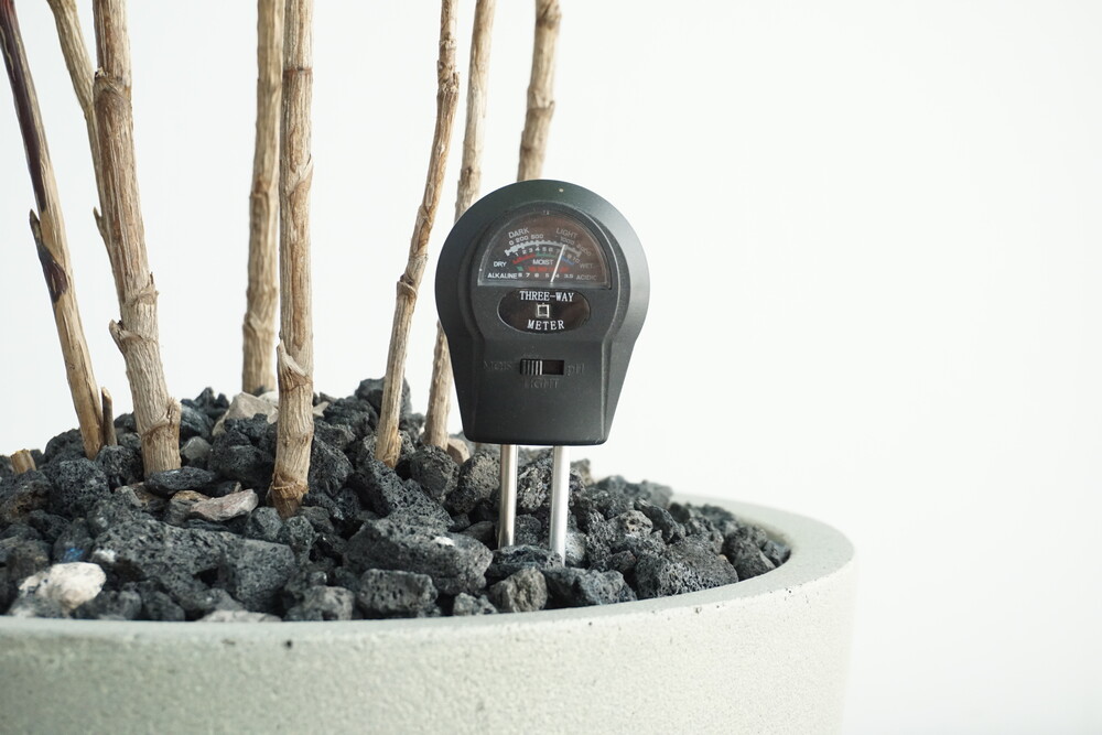무동력 측정기를 이용하여 현재 화분 속 상태(수분, 산성도/일조량)를 체크해 볼 수 있습니다.