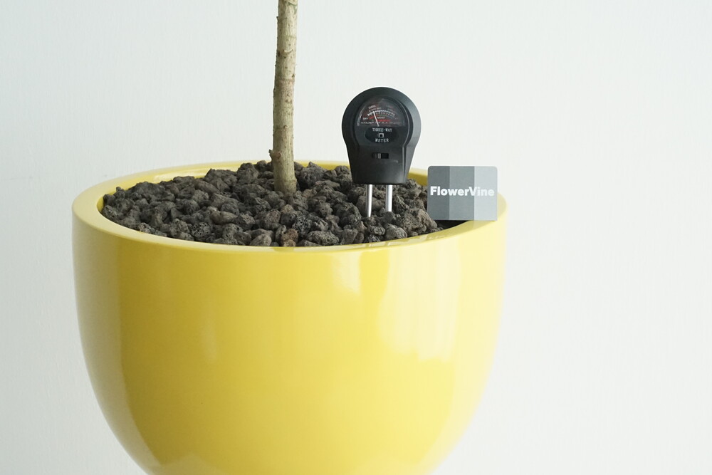 무동력 측정기를 이용하여 현재 화분 속 상태(수분, 산성도/일조량)를 체크해 볼 수 있습니다.