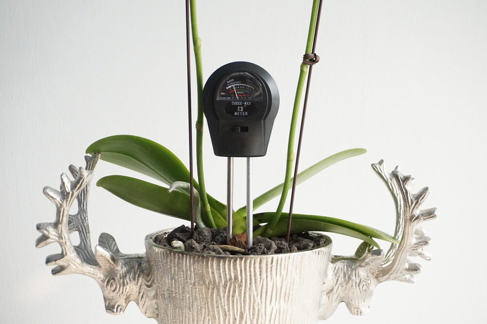 무동력 측정기를 이용하여 현재 화분 속 상태(수분, 산성도/일조량)를 체크해 볼 수 있습니다.