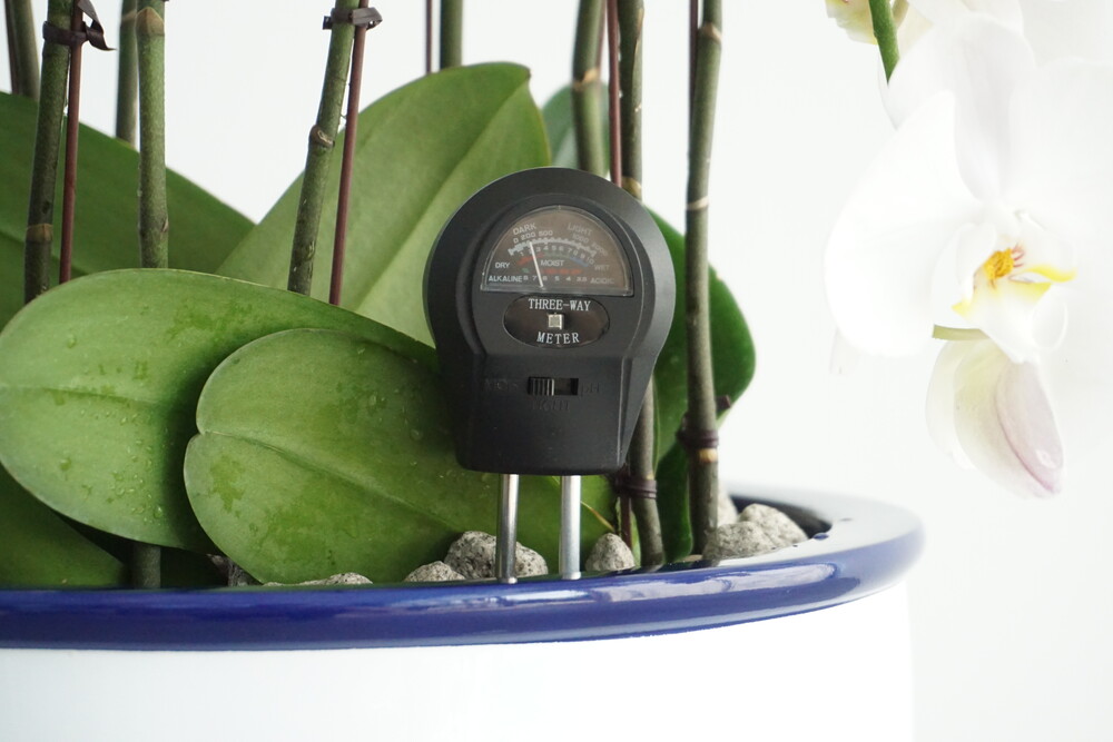 무동력 측정기를 이용하여 현재 화분 속 상태(수분, 산성도/일조량)를 체크해 볼 수 있습니다.