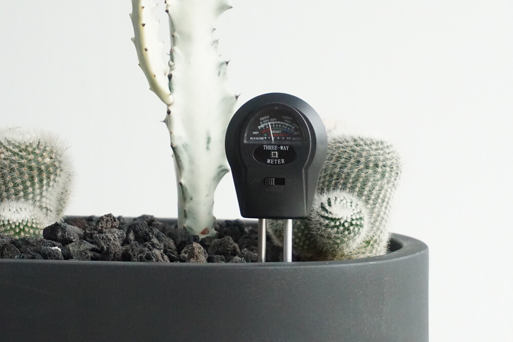 무동력 측정기를 이용하여 현재 화분 속 상태(수분, 산성도/일조량)를 체크해 볼 수 있습니다.