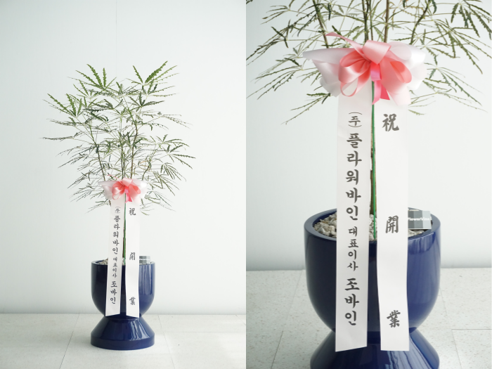 - 옵션에서 리본을 선택하고 원하시는 문구를 작성해 주세요. (좌 : 보내는 사람 / 우 : 문구)