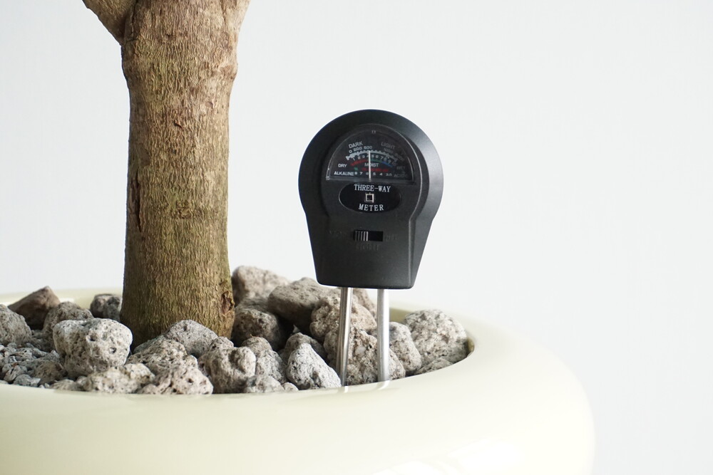 무동력 측정기를 이용하여 현재 화분 속 상태(수분, 산성도/일조량)를 체크해 볼 수 있습니다.