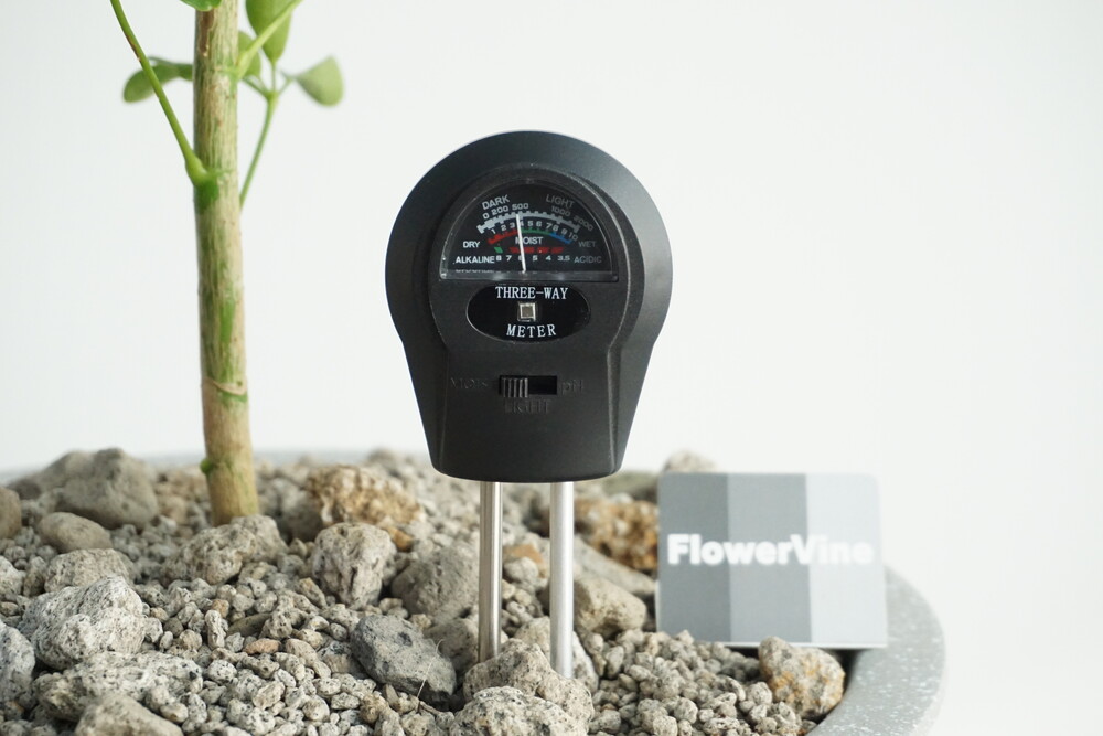무동력 측정기를 이용하여 현재 화분 속 상태(수분, 산성도/일조량)를 체크해 볼 수 있습니다.