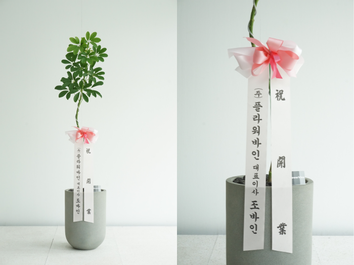 - 옵션에서 리본을 선택하고 원하시는 문구를 작성해 주세요. (좌 : 보내는 사람 / 우 : 문구)