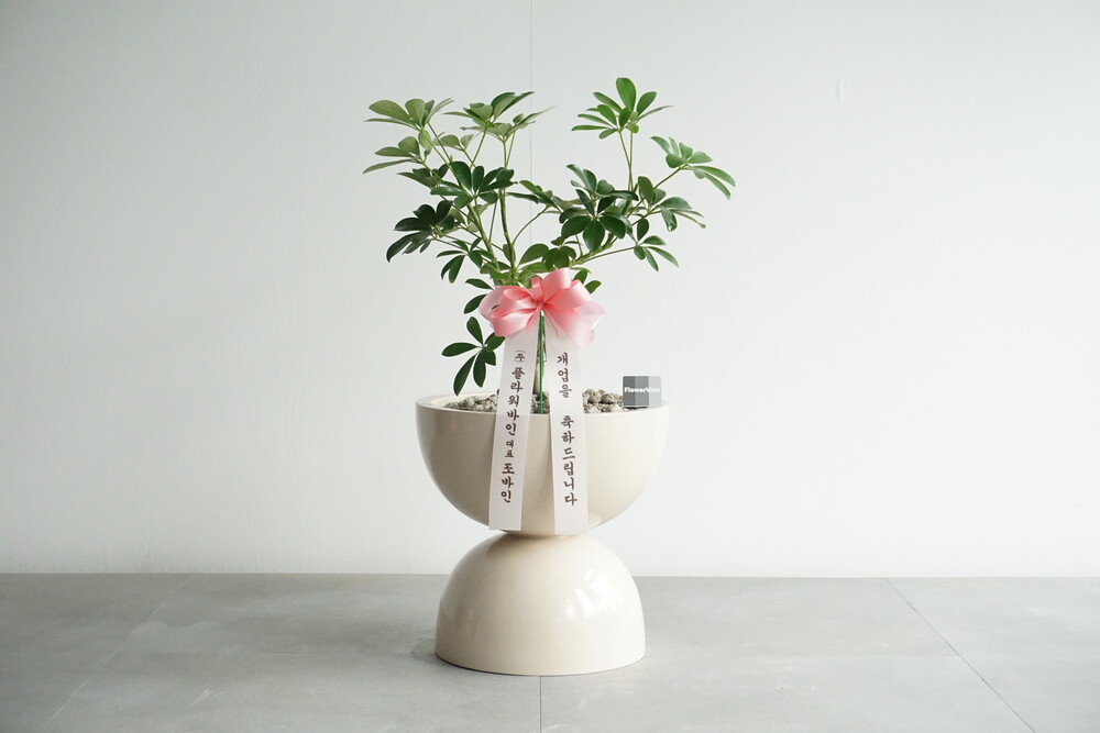 식물 : 분재형 홍콩야자나무 / 화분 : 베이지 더블 라운드화분