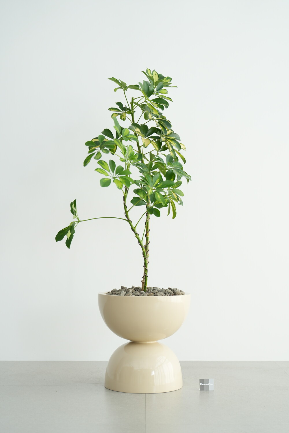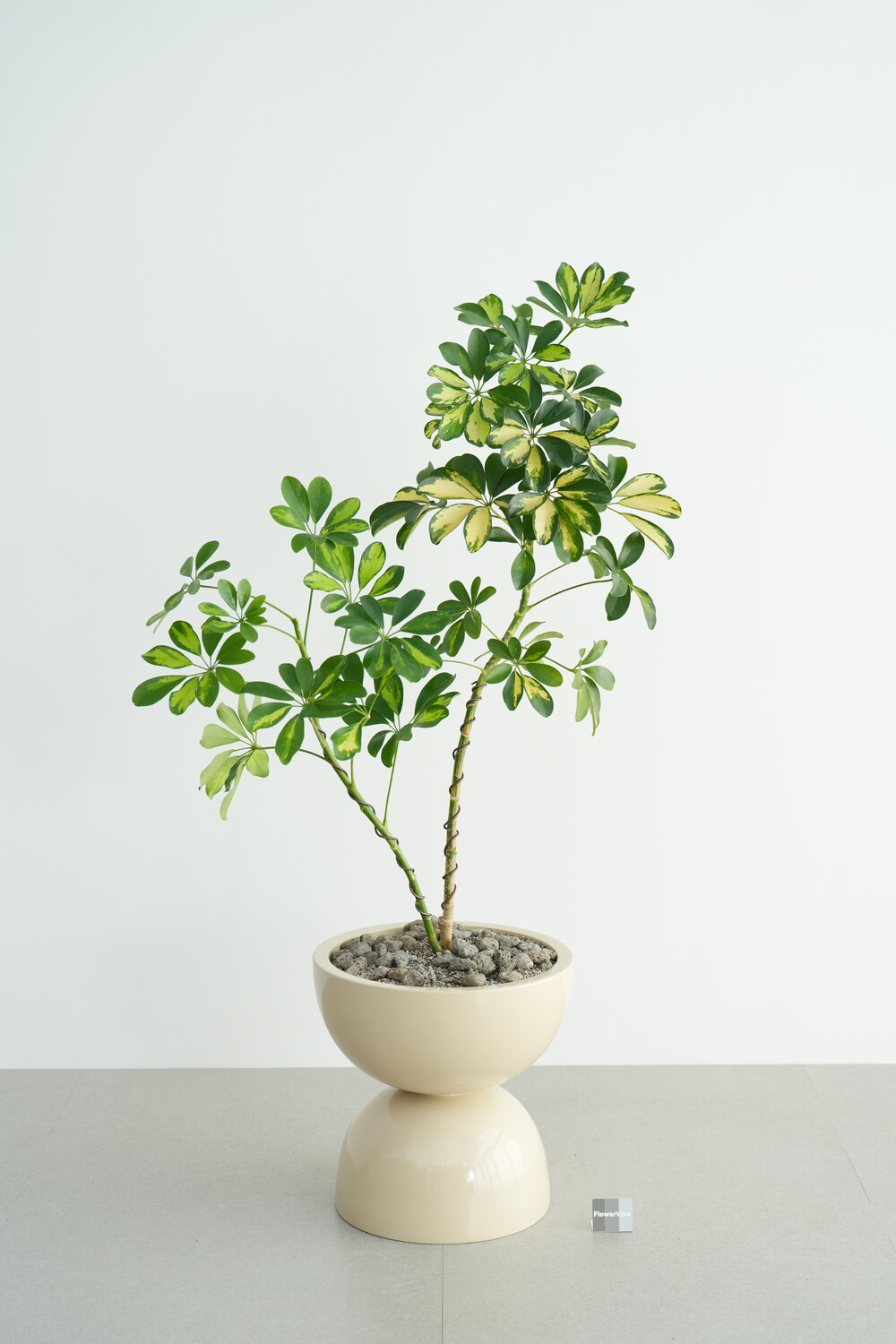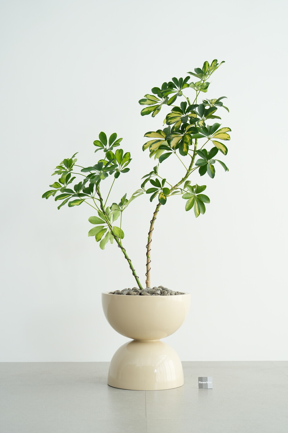 식물 : 무늬 홍콩야자나무 / 화분 : 베이지 더블 라운드화분