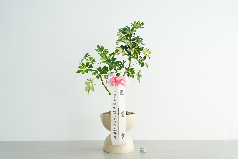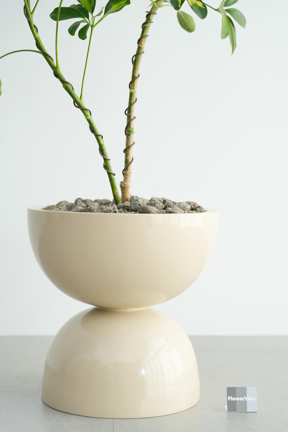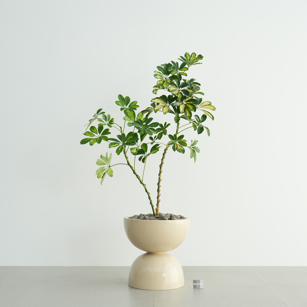 식물 : 무늬 홍콩야자나무 / 화분 : 베이지 더블 라운드화분