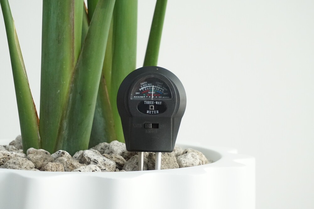 무동력 측정기를 이용하여 현재 화분 속 상태(수분, 산성도/일조량)를 체크해 볼 수 있습니다.