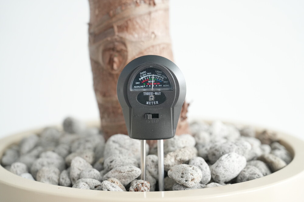 무동력 측정기를 이용하여 현재 화분 속 상태(수분, 산성도/일조량)를 체크해 볼 수 있습니다.