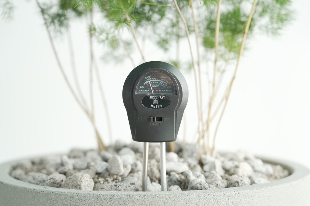 무동력 측정기를 이용하여 현재 화분 속 상태(수분, 산성도/일조량)를 체크해 볼 수 있습니다.