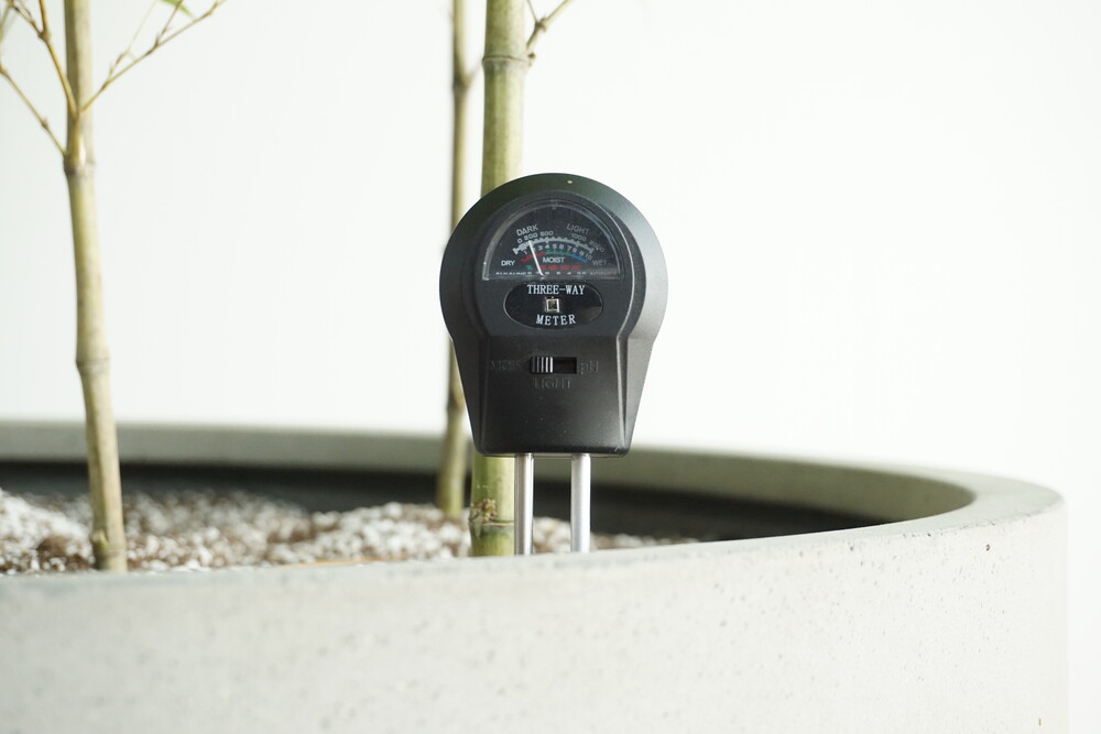 흙 수분량에 따라서 센서의 저항값 변동을 눈금으로 알려주는 원리로 배터리나 충전이 필요 없는