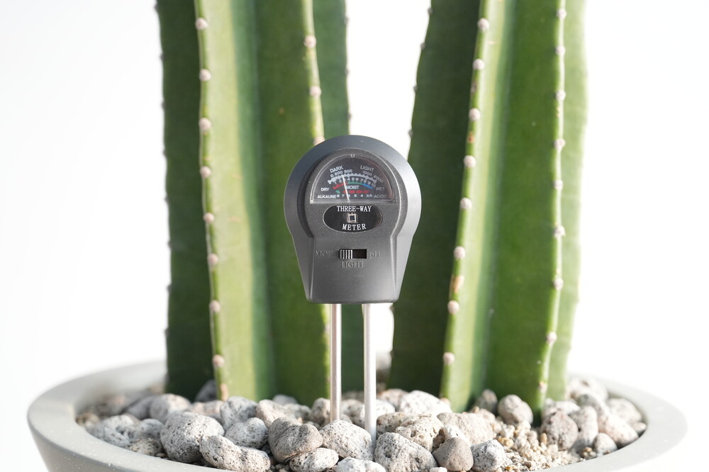 무동력 측정기를 이용하여 현재 화분 속 상태(수분, 산성도/일조량)를 체크해 볼 수 있습니다.
