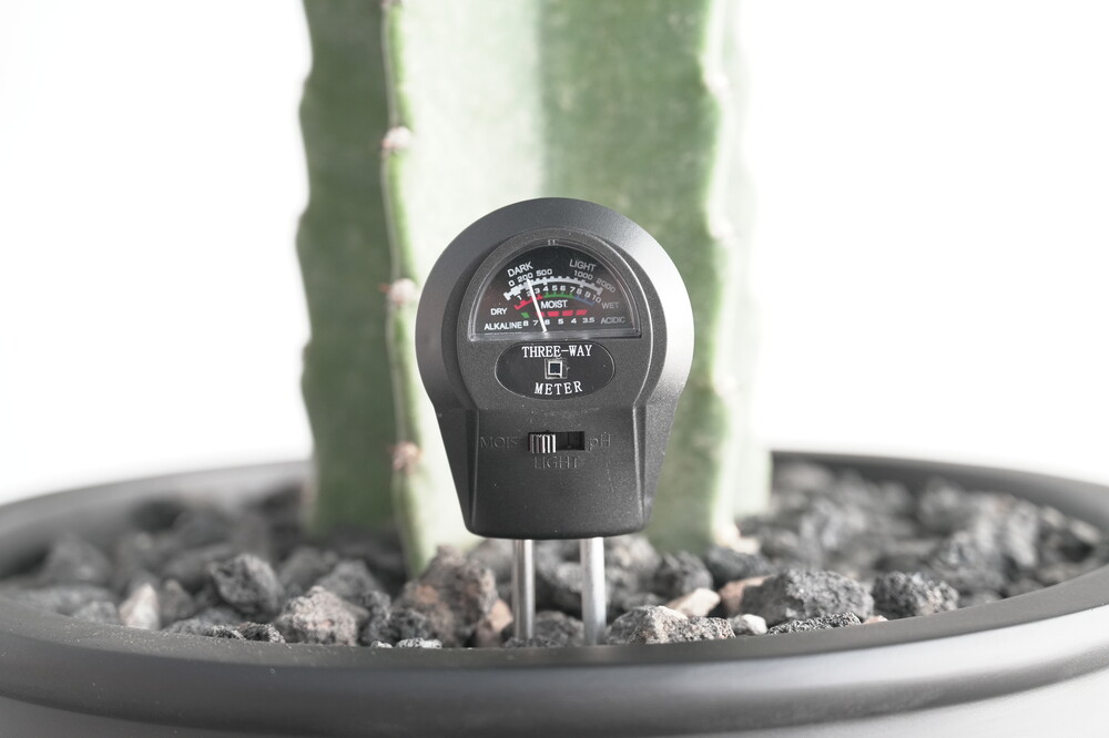 무동력 측정기를 이용하여 현재 화분 속 상태(수분, 산성도/일조량)를 체크해 볼 수 있습니다.