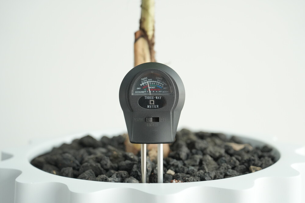 무동력 측정기를 이용하여 현재 화분 속 상태(수분, 산성도/일조량)를 체크해 볼 수 있습니다.