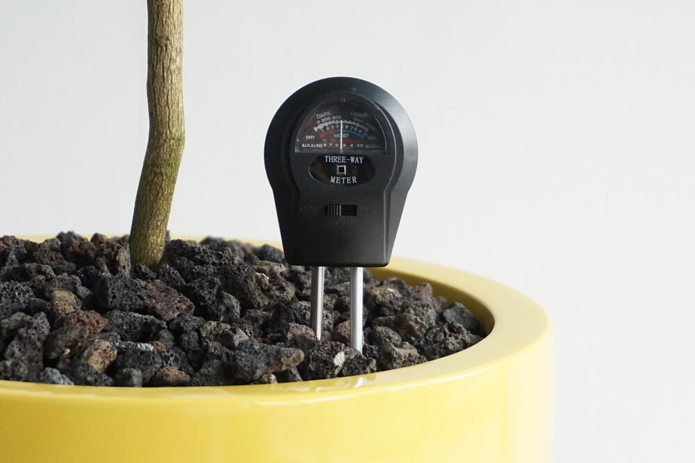 흙 수분량에 따라서 센서의 저항값 변동을 눈금으로 알려주는 원리로 배터리나 충전이 필요 없는