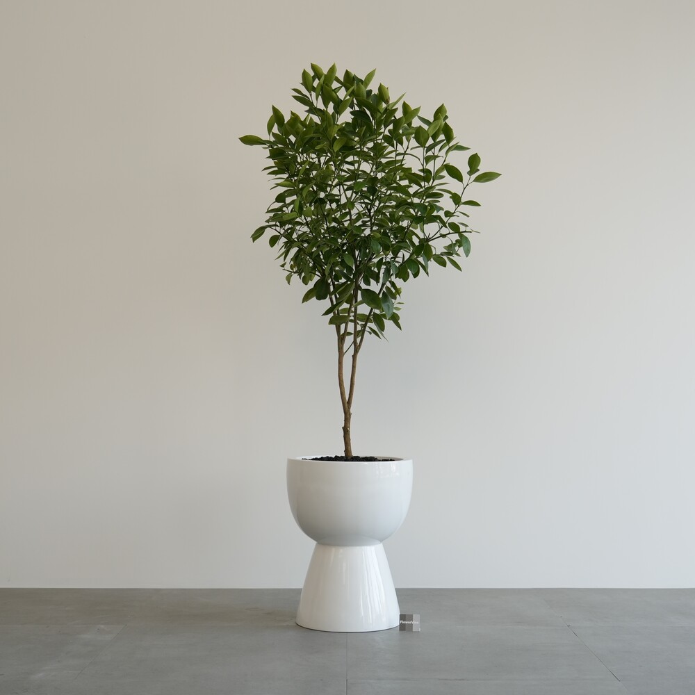 식물 : 유주나무(사계귤) / 화분 : 유광 화이트 GW-2화분