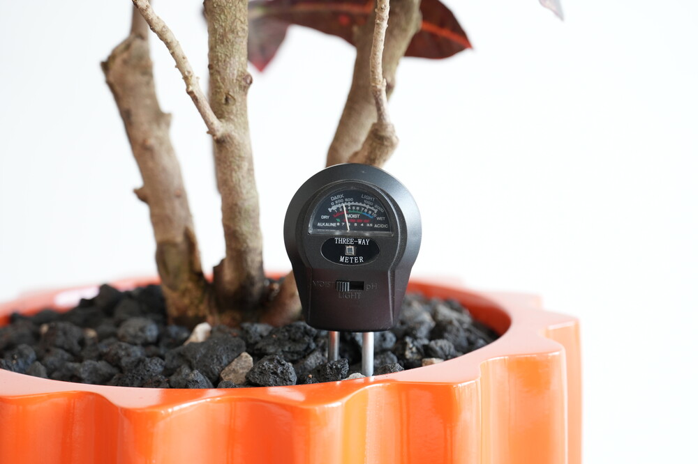 무동력 측정기를 이용하여 현재 화분 속 상태(수분, 산성도/일조량)를 체크해 볼 수 있습니다.