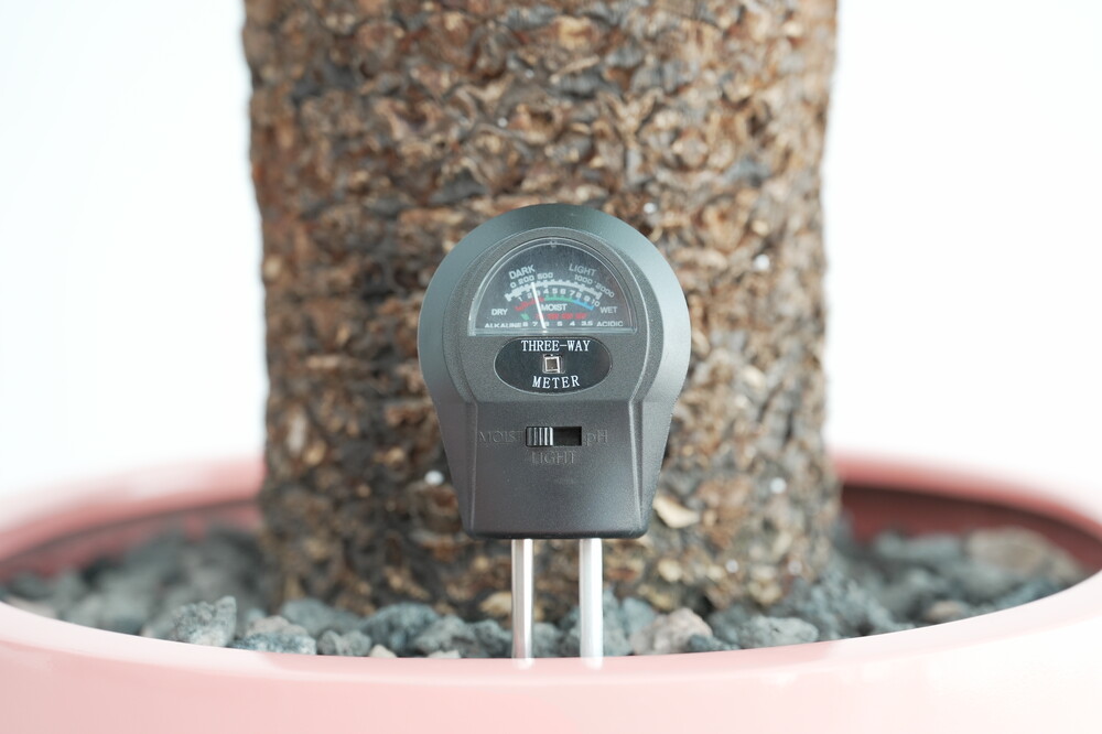 무동력 측정기를 이용하여 현재 화분 속 상태(수분, 산성도/일조량)를 체크해 볼 수 있습니다.