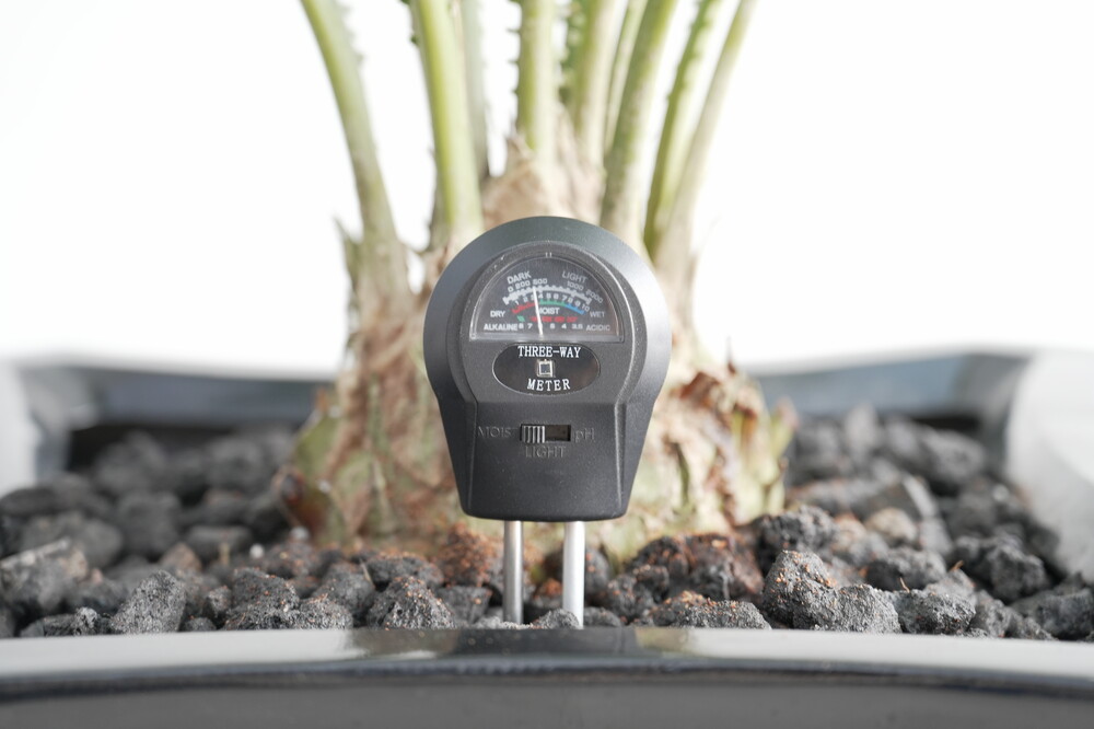 무동력 측정기를 이용하여 현재 화분 속 상태(수분, 산성도/일조량)를 체크해 볼 수 있습니다.