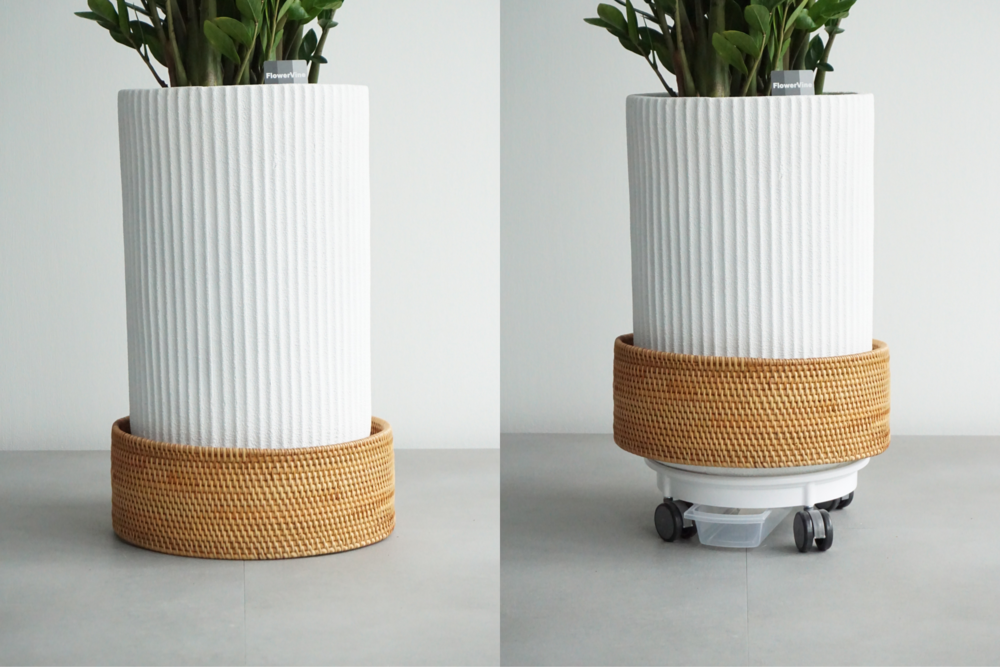 플라워바인에서 디자인한 물받이 전용 라탄커버를 사용하시면 보다 고급스러운 식물 인테리어 연출을 해 보실 수 있습니다. 옵션란에서 선택해 주세요.