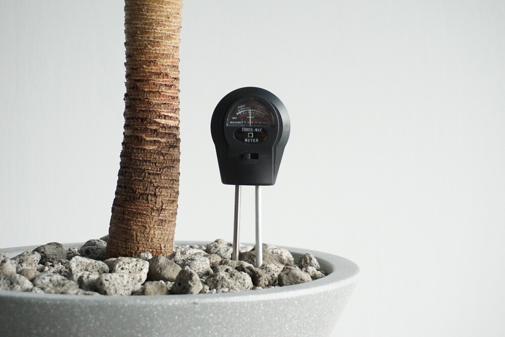 흙 수분량에 따라서 센서의 저항값 변동을 눈금으로 알려주는 원리로 배터리나 충전이 필요 없는