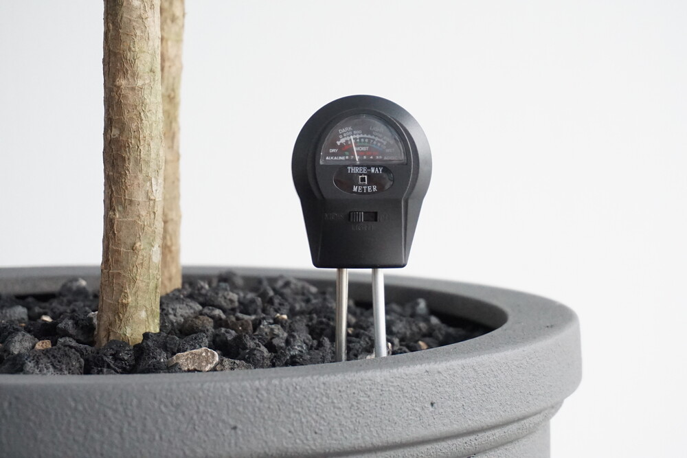무동력 측정기를 이용하여 현재 화분 속 상태(수분, 산성도/일조량)를 체크해 볼 수 있습니다.