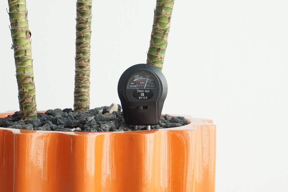 무동력 측정기를 이용하여 현재 화분 속 상태(수분, 산성도/일조량)를 체크해 볼 수 있습니다.