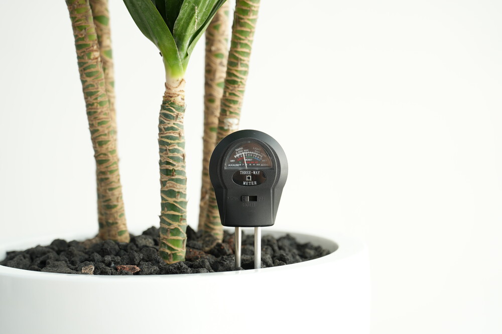 무동력 측정기를 이용하여 현재 화분 속 상태(수분, 산성도/일조량)를 체크해 볼 수 있습니다.