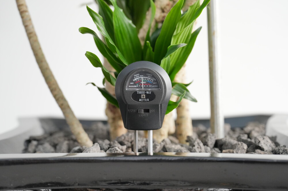 무동력 측정기를 이용하여 현재 화분 속 상태(수분, 산성도/일조량)를 체크해 볼 수 있습니다.