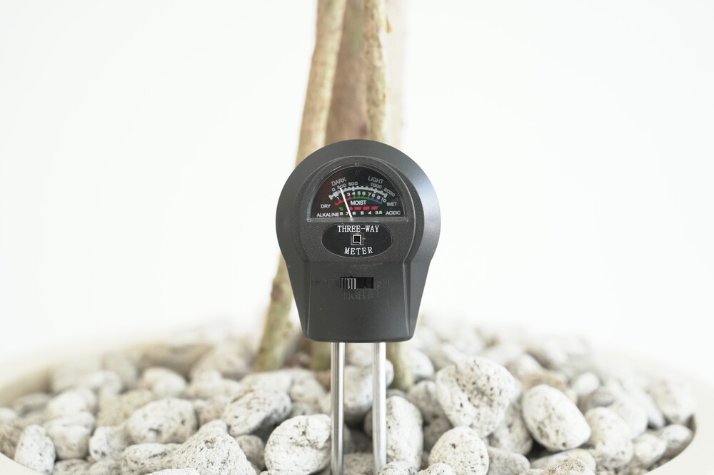 무동력 측정기를 이용하여 현재 화분 속 상태(수분, 산성도/일조량)를 체크해 볼 수 있습니다.