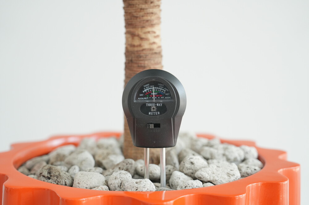 무동력 측정기를 이용하여 현재 화분 속 상태(수분, 산성도/일조량)를 체크해 볼 수 있습니다.