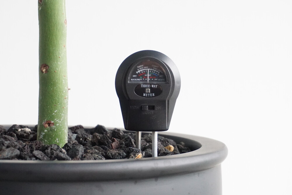 무동력 측정기를 이용하여 현재 화분 속 상태(수분, 산성도/일조량)를 체크해 볼 수 있습니다.