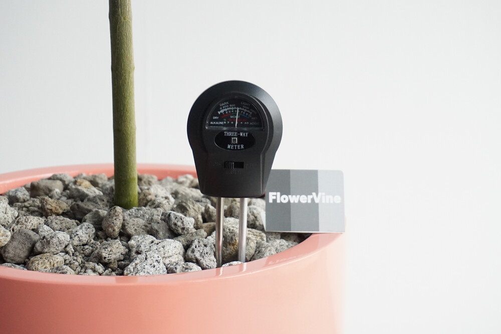 무동력 측정기를 이용하여 현재 화분 속 상태(수분, 산성도/일조량)를 체크해 볼 수 있습니다.
