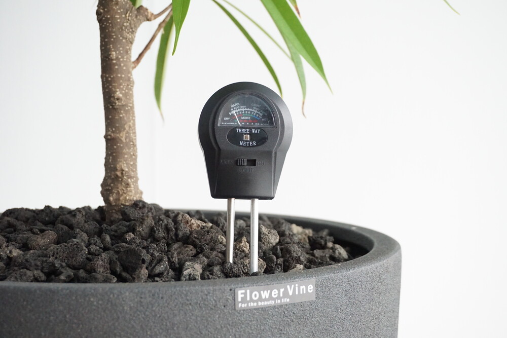 무동력 측정기를 이용하여 현재 화분 속 상태(수분, 산성도/일조량)를 체크해 볼 수 있습니다.