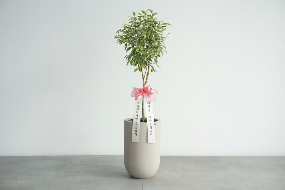 식물 : 무늬 벤자민 고무나무 / 화분 : 빈티지그레이화분