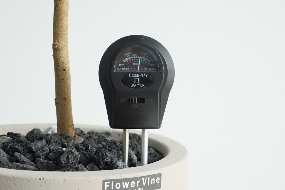 무동력 측정기를 이용하여 현재 화분 속 상태(수분, 산성도/일조량)를 체크해 볼 수 있습니다.